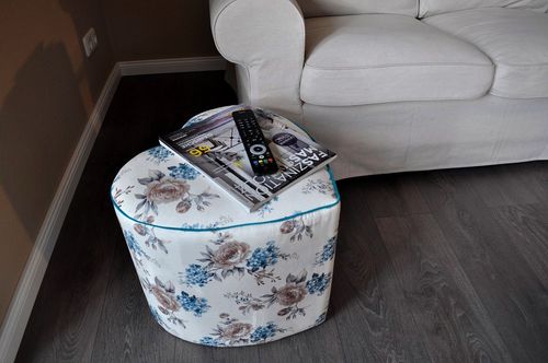 Design Hocker Pouf Carl Svensson Türkis Creme Rosen Blumen PK-3m