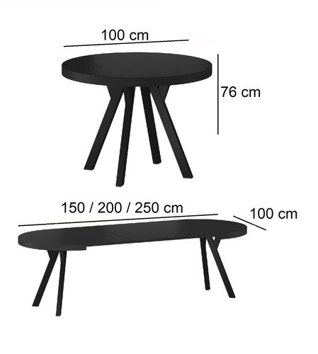 Design Esstisch GS-222 Eiche Artisan - Schwarz matt rund ausziehbar